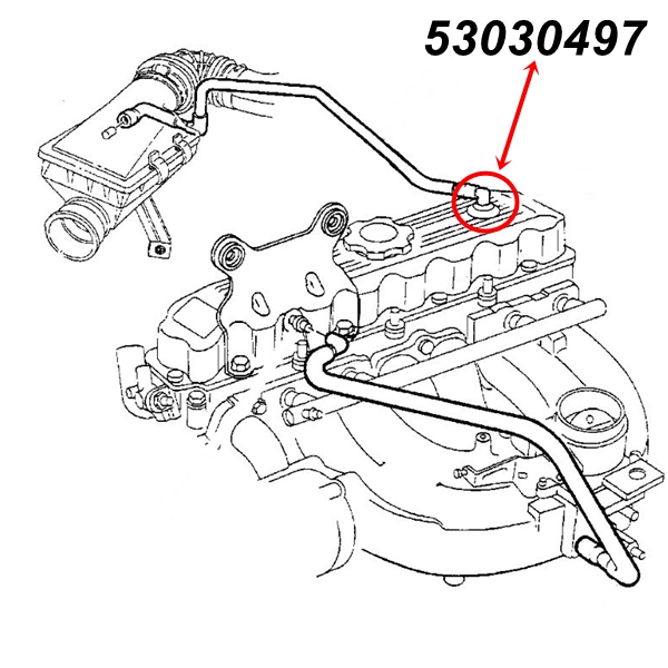 Jeep Cherokee XJ Bj. 93-96 mit 2,5 ltr. Motor PCV Ventil Winkelstück am Ventildeckel hinten Vergleichsnr.: 53030497