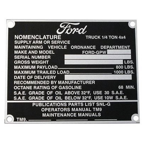 The plate contains important information such as the vehicle identification number,