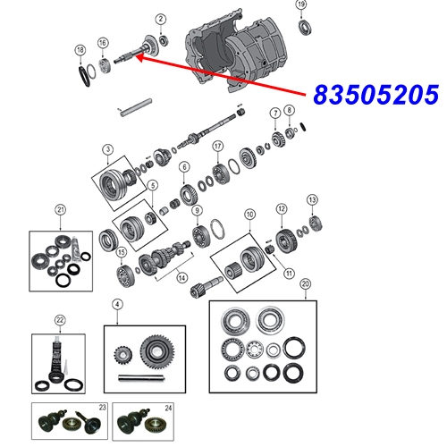 Jeep Cherokee XJ, 1987-1989Input shaft (see photo)Please note:only suitable for Peugeot BA10/5 manual transmissionReference No.: 83505205 , BA10-16 , J115721